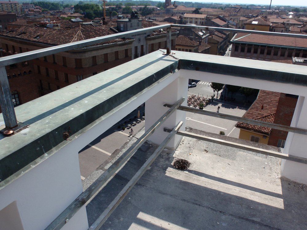 Consolidamento strutturale con sistemi fibrati, torretta al settimo piano edificio Camera di Commercio di Cremona.